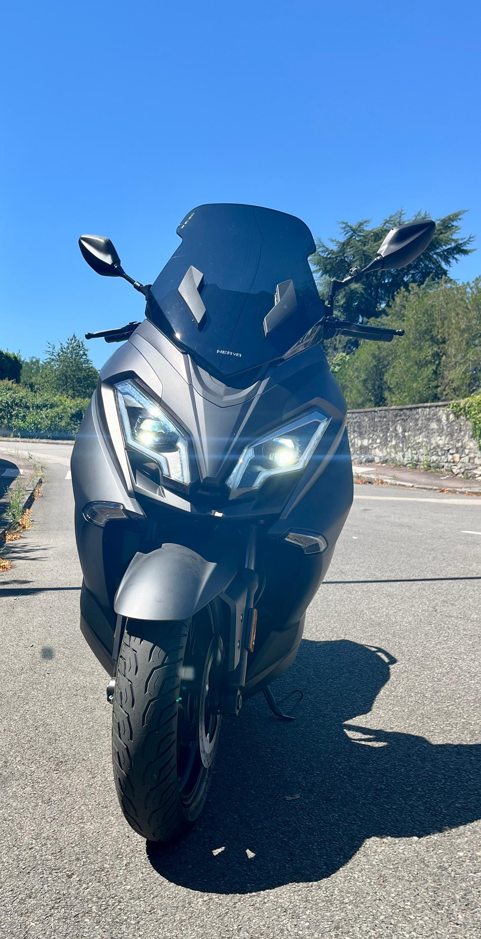 Le NERVA EXE est un scooter électrique équivalent 125 cm³, idéal pour les trajets urbains et périurbains. Confortable, robuste et silencieux, il associe performance, autonomie et fiabilité.