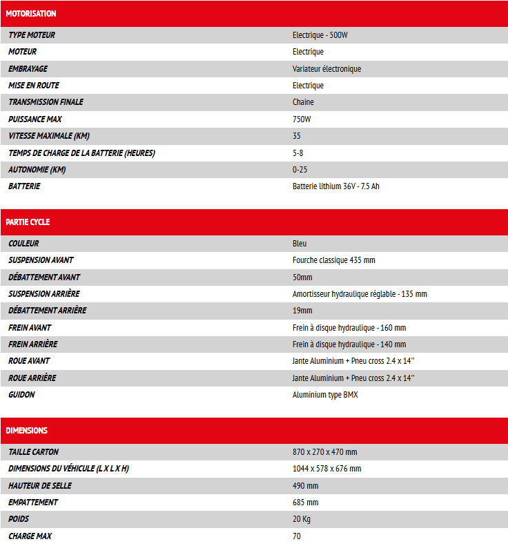 POCKET BIKE ELECTRIQUE ENFANT SEDNA TXR 500W